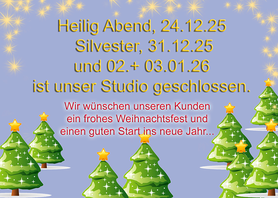 Heilig Abend, Silvester und 02./03.01.26 ist unser Studio geschlossen